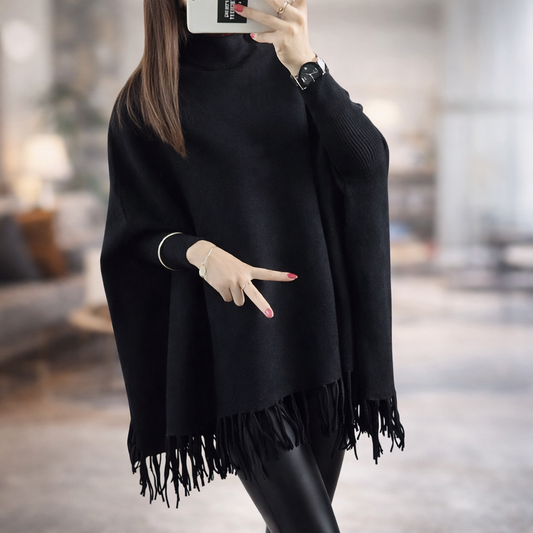 Winter Fleece Poncho for Girls – High Neck, Tassel Design, Adjustable Short Sleeves, Princess Style, Free Size